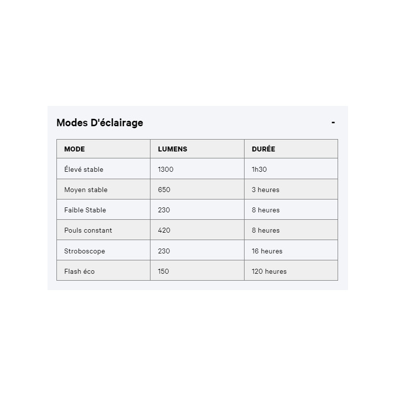 SORTIE DE LUMEN MAXIMALE 1300 lumens