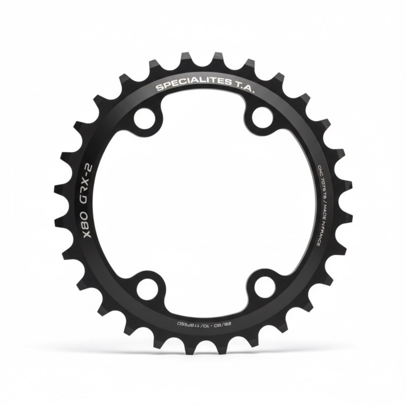 Plateau 80x4 TA alu gravel 10/11/12v X80 GRX-2 Shimano intérieur compact noir, entraxe 80...