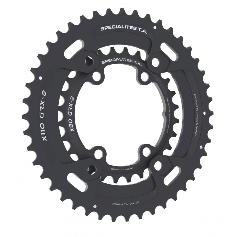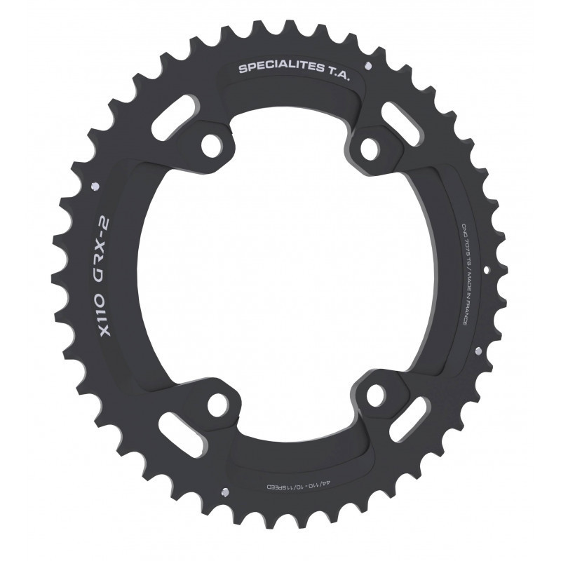Plateau 110x4 TA alu gravel 10/11/12v X110 GRX-2 Shimano extérieur compact noir, entraxe 110...