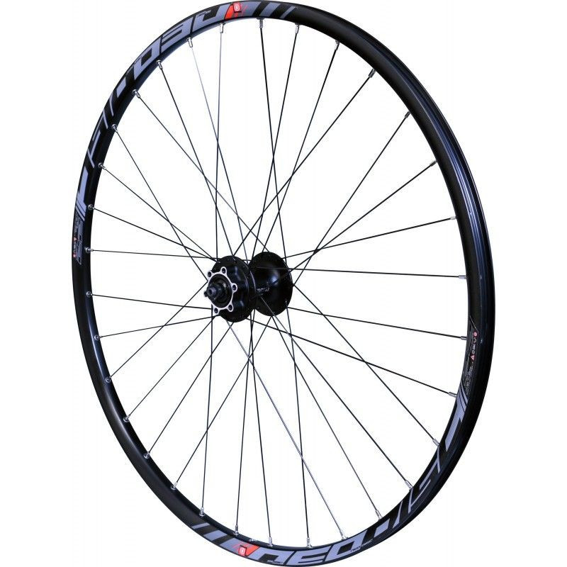 Roue à pneu avant 26p VELO vtt jante Néo noire, moyeu 100x9mm alu noire Disc 6 trous, avec blocage rapide, 26p.