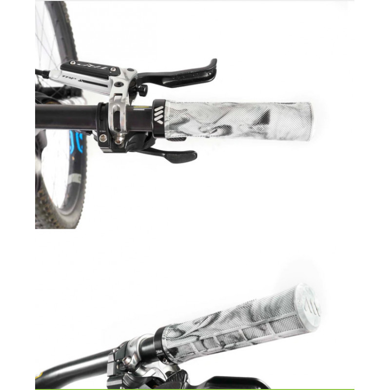 Poignées de guidon AMS caoutchouc Berm Lock-on 29.5/33.9 Blanche Camo, 1 collier ...