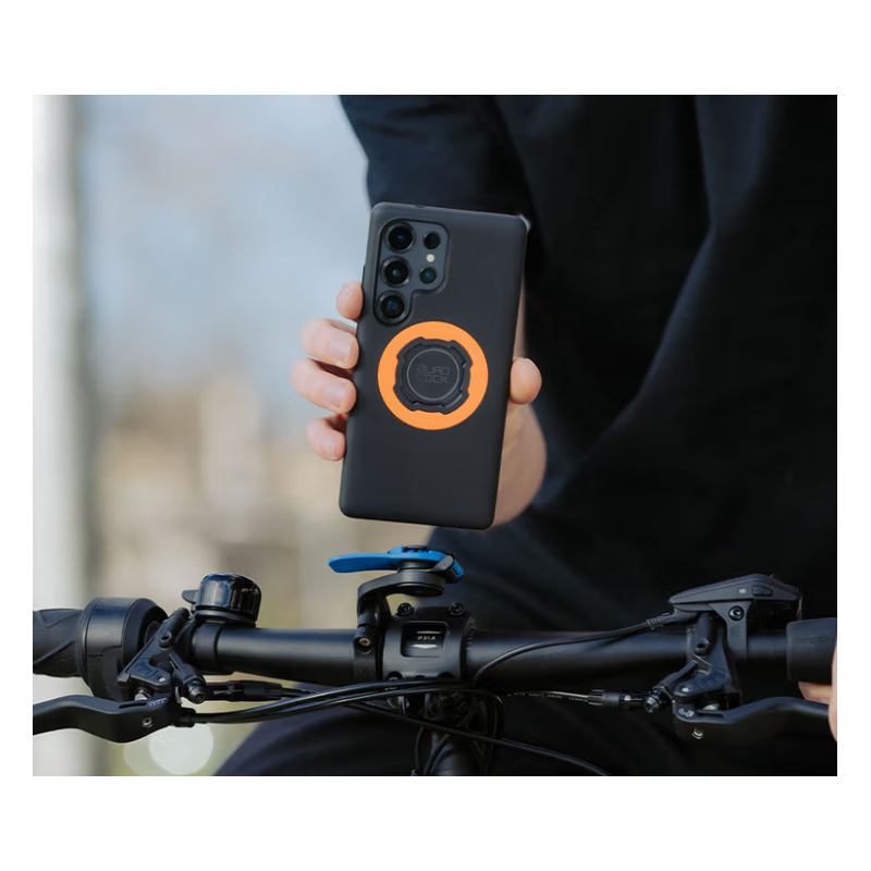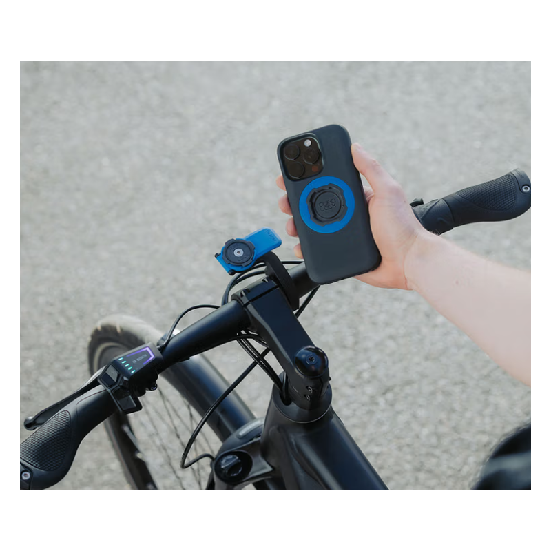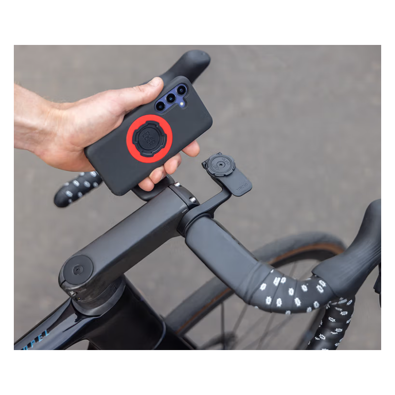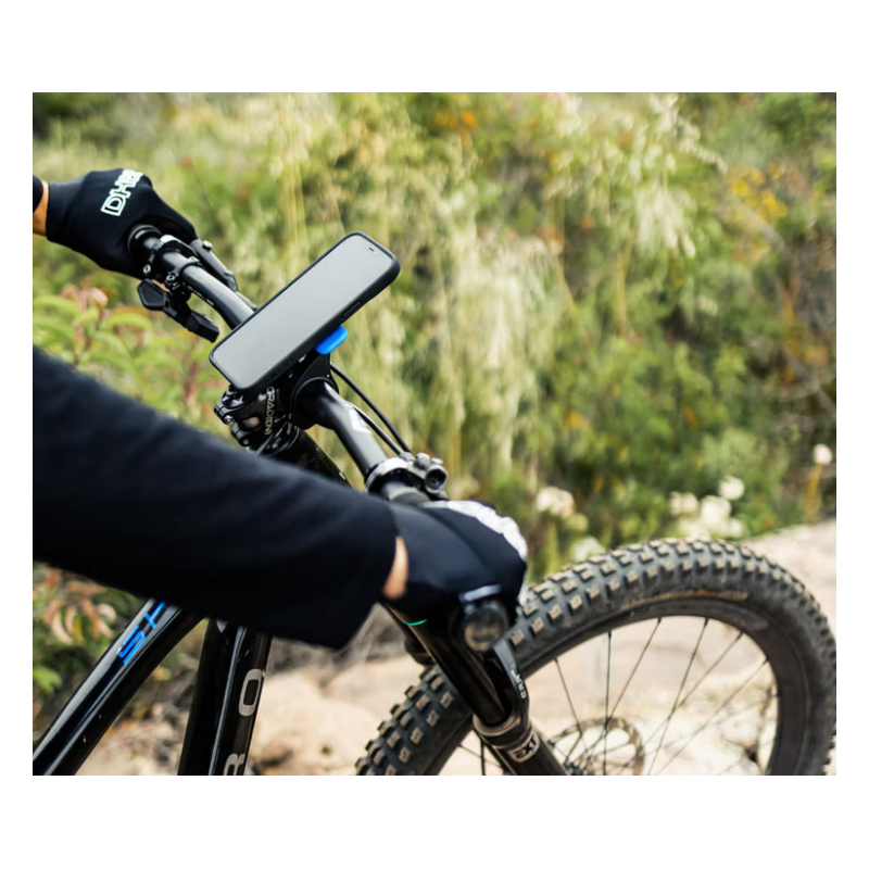 Le support avant Quad Lock Out positionne votre téléphone de manière sûre et aérodynamique devant votre guidon pour une visibilité optimale à vélo.