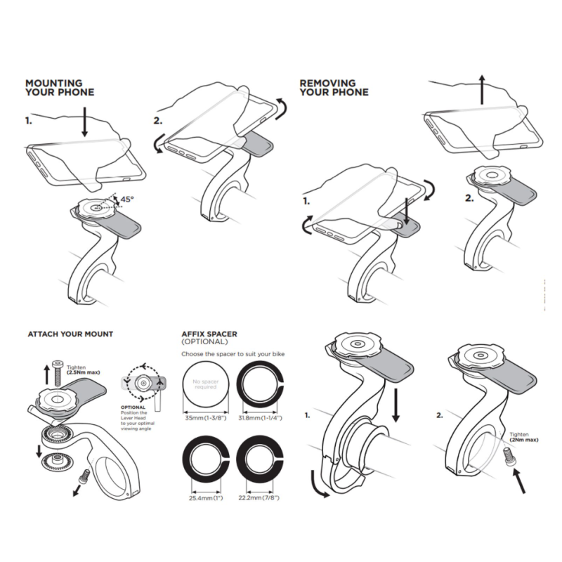 Support téléphone QUADLOCK alu déporté Out Front Mount Pro 60 noir, fixation sur cintre ...