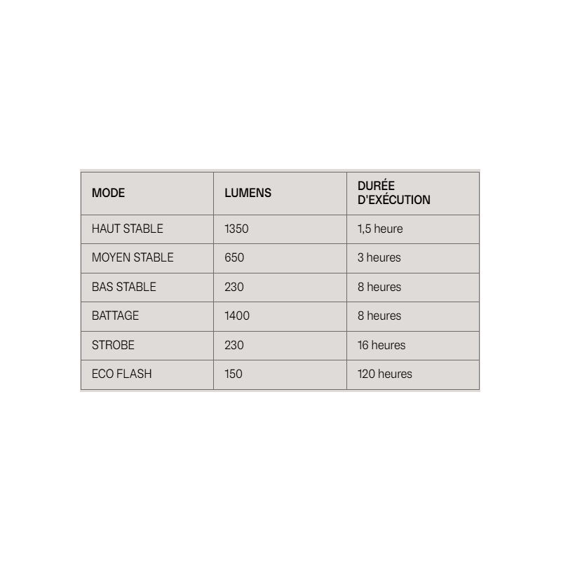 visible à 1000m, 8h en constant bas, fixation sangle élastique de 22 à 35mm maxi,