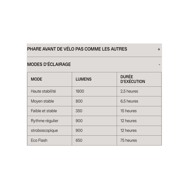 La télécommande sur le guidon permet de basculer rapidement entre 6 modes d’éclairage, pour une visibilité optimale en tout terrain.