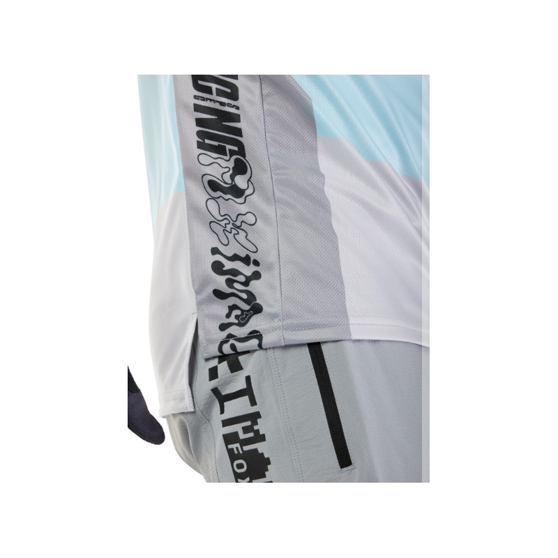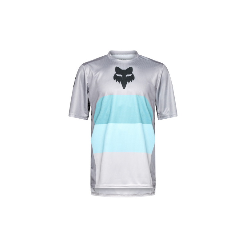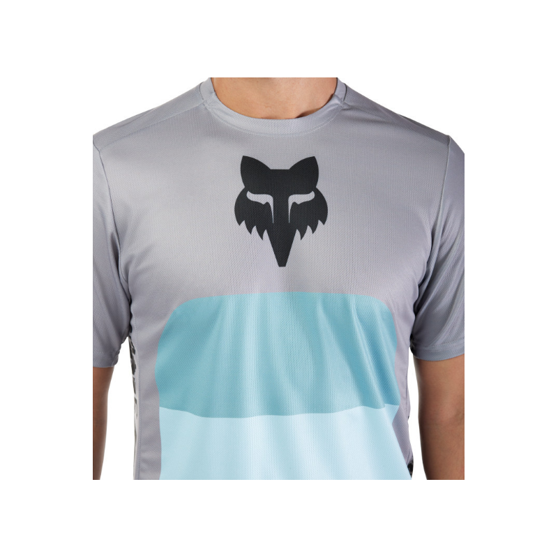 Maillot manches courtes vtt - FOX Ranger Grid - gris clair décor bleu dégradé :