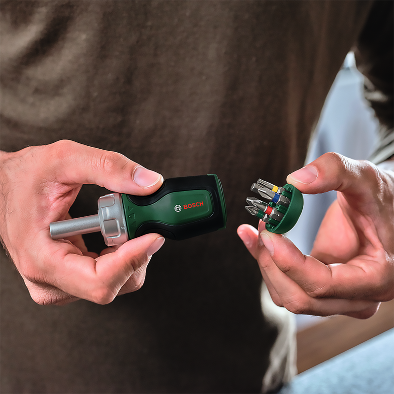 Tournevis à cliquet BOSCH acier chrome vanadium Extra Court 111 Douille Aimantée 6mm,