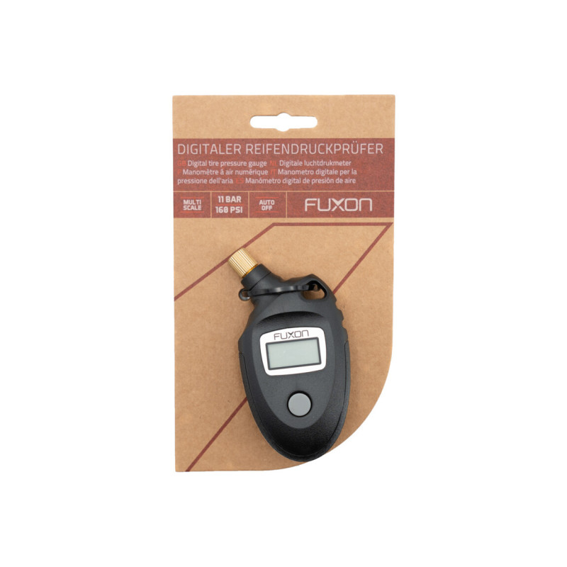Manomètre FUXON digital Noir, valve Presta et Shrader, jusqu'à 160 psi / 11 bars, pile cr 2032, 36gr, PRATIQUE.