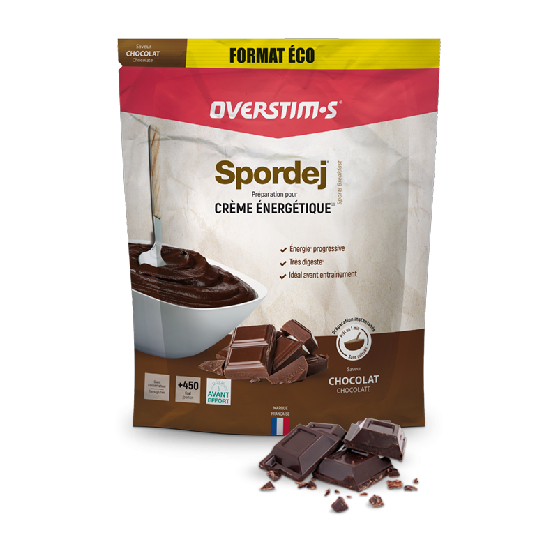 Aliment avant l'effort OVERSTIM'S Spordej chocolat, préparation digeste avant et après l'effort, 1500gr, sachet.