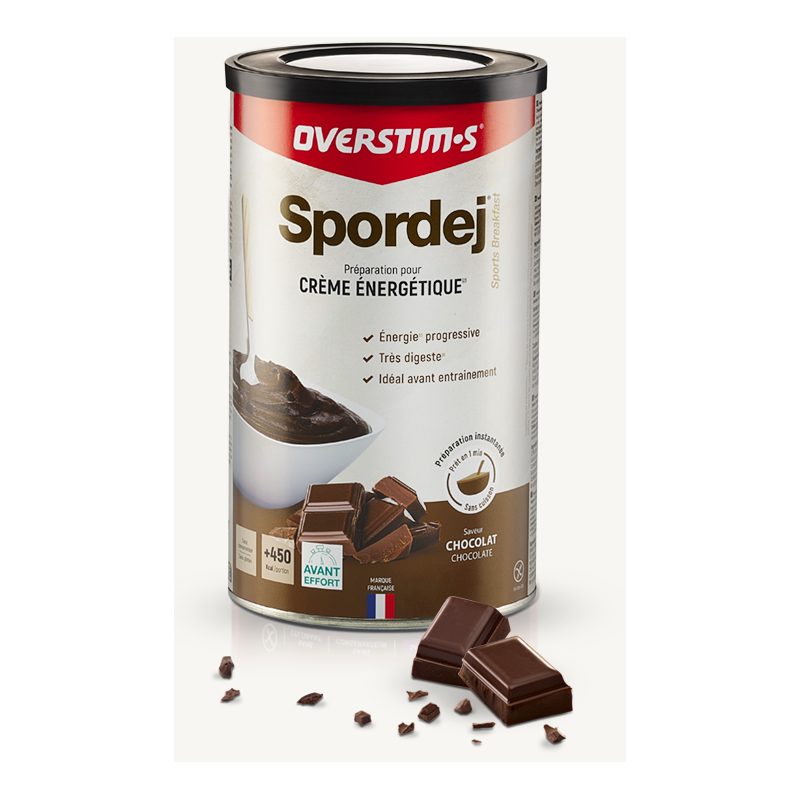 Aliment avant l'effort OVERSTIM'S Spordej, 700 gr, chocolat, préparation digeste avant et après l'effort, POT.