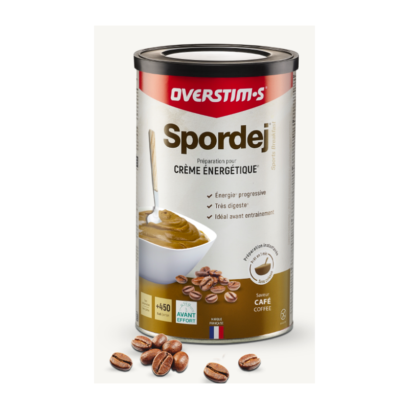 Aliment avant l'effort OVERSTIM'S Spordej, 700 gr, café, préparation digeste avant et après l'effort, POT.