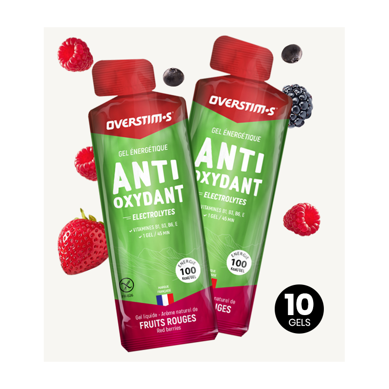 Gel énergétique OVERSTIM's Antioxydant Liquide - 27 gr - Fruits Fouges - énergie rapide et progressive - ppc 22.95 €ttc - Boîte 10 sachets.