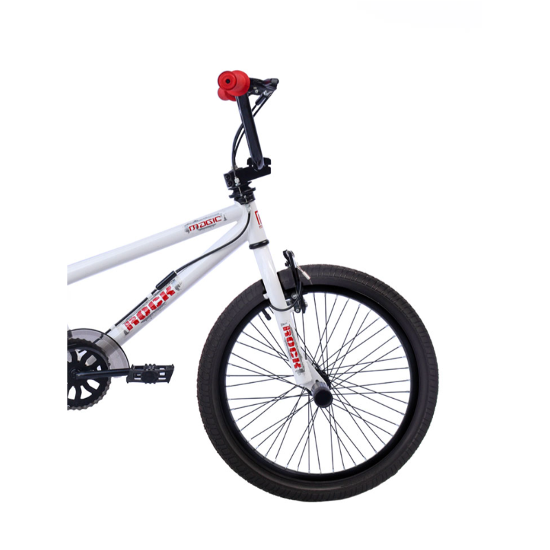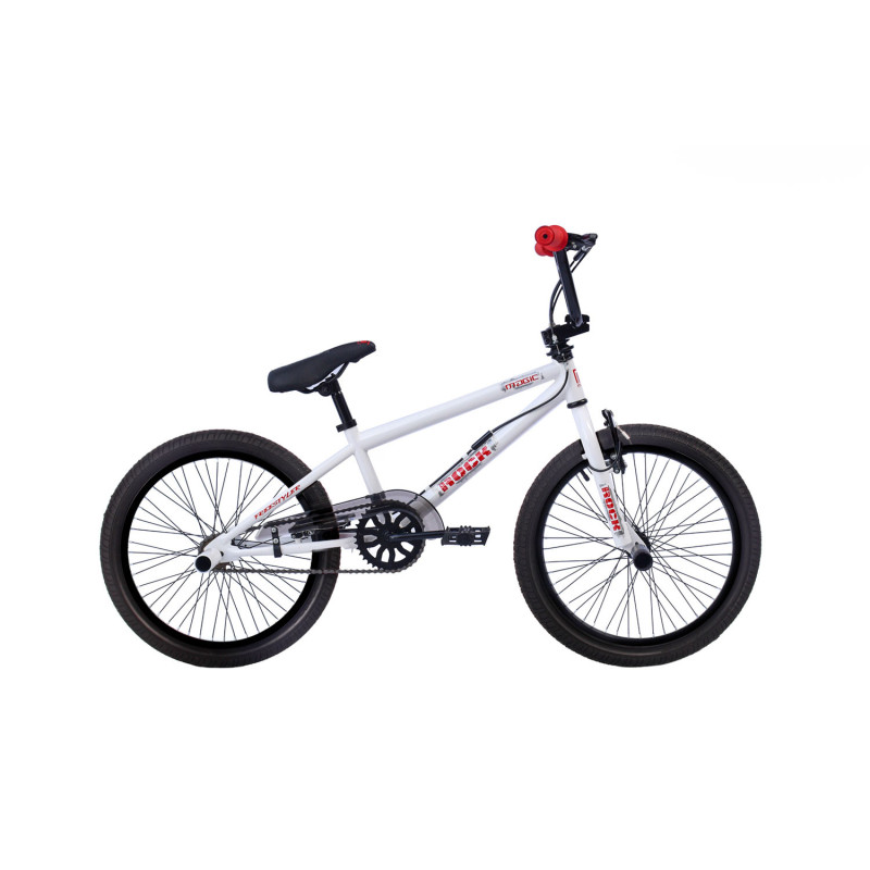 Vélo bmx acier 6 à 14 ans BMX ROCK 20 FreeStyle blanc décor noir