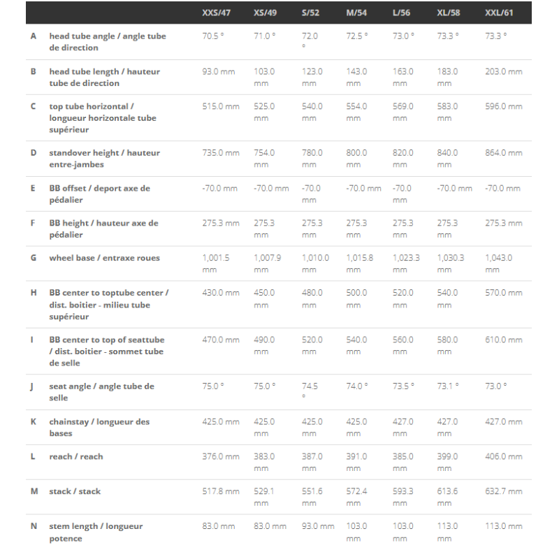 Remarque : les caractéristiques du vélo sont susceptibles d’être modifiées sans préavis.