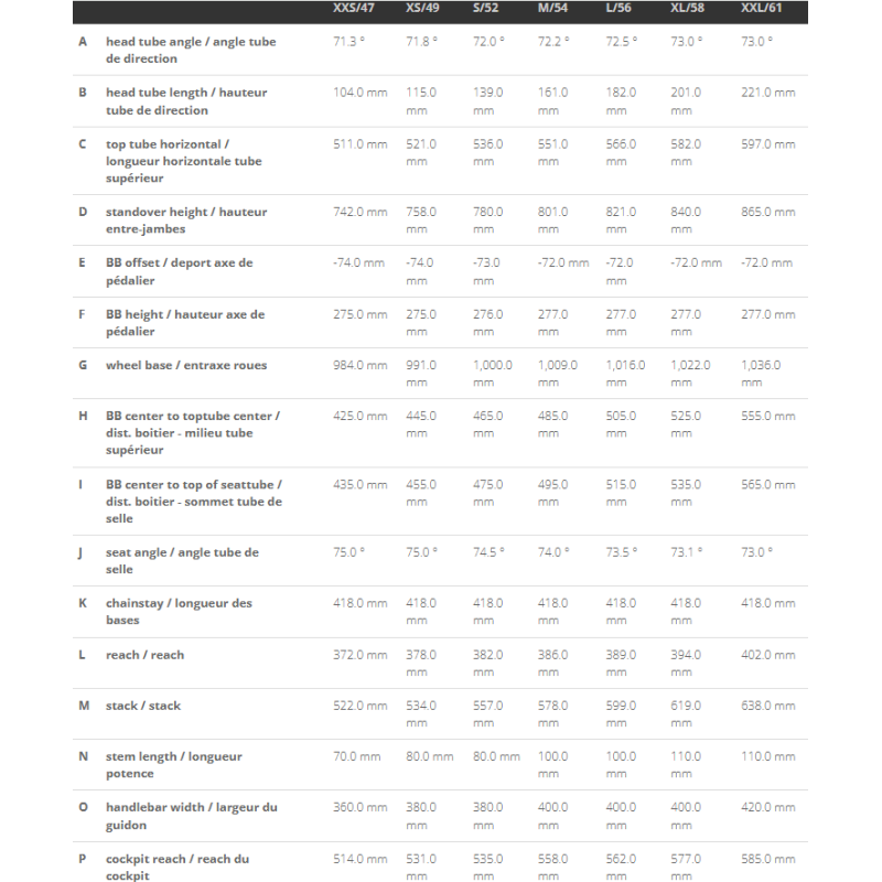 Remarque : les caractéristiques du vélo sont susceptibles d’être modifiées sans préavis.