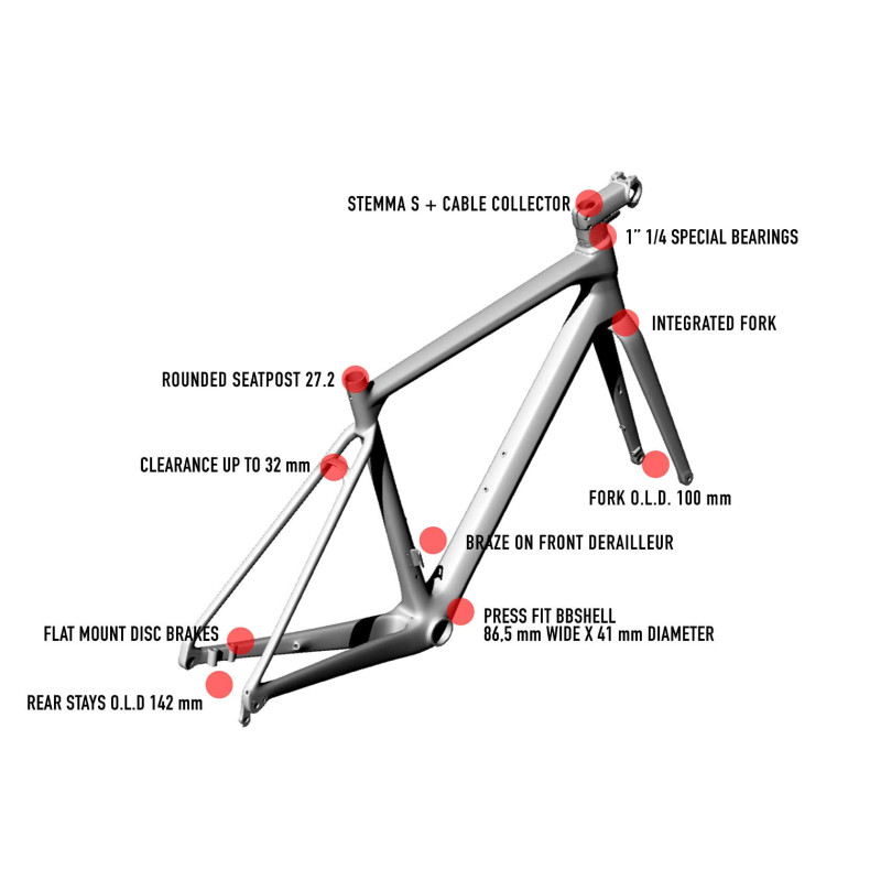 Garda incarne les meilleures solutions développées pour les vélos de course haut de gamme en carbone: la forme particulière de l'attache guidon Stemma S accueille les câbles à l'intérieur du cadre pour une intégration complète et une sobriété esthétique de haut niveau.