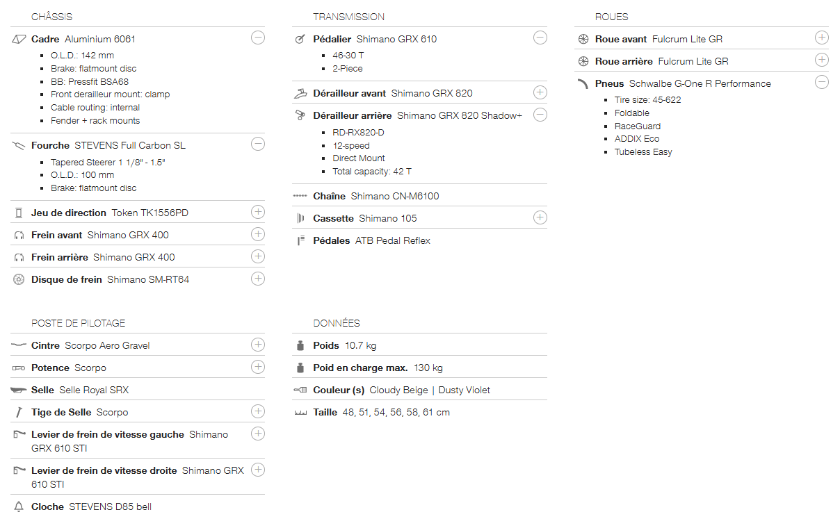 Vélo gravel 700 alu - STEVENS Gavere Com - Cloudy Beige ou Dusty Violet: 2x12v