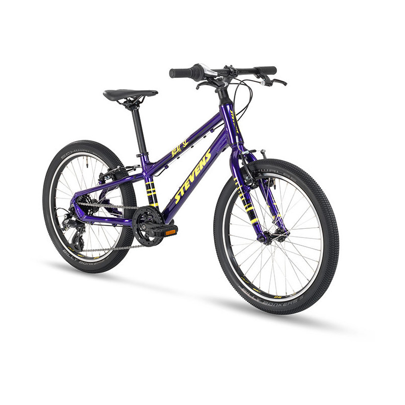 Vélo enfant 6 à 9 ans, fille, alu STEVENS vtt Beat SL 20 Royal Purple, violet décor jaune,