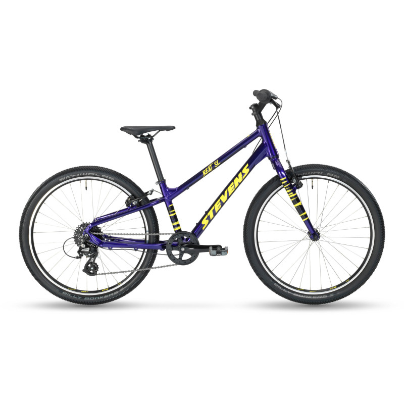 Vélo enfant 9 à 12 ans, fille, alu STEVENS vtt Beat SL 24 Royal Purple, violet décor jaune,